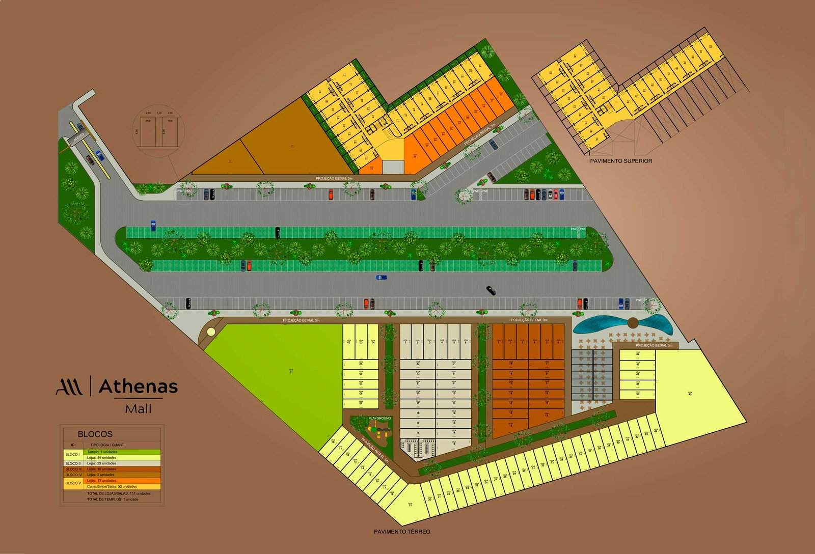 Todos os projetos, plantas e ilustrações apresentados poderão ser alterados nas quantidades, dimensões, especificações, programas e texturas, assim como os dados técnicos poderão sofrer adaptações, de acordo com eventuais exigências dos órgãos públicos competentes. Projeto aprovado pela SMOU da Prefeitura de Campos dos Goytacazes/RJ. Planta de nº 924, sob o nº de processo 50844/2024. O MEMORIAL DE INCORPORAÇÃO do empreendimento denominado “ATHENAS MALL” foi registrado sob o nº R-003/00014396 do Livro 02, no CARTÓRIO DO 12O OFÍCIO DE JUSTIÇA DE CAMPOS DOS GOYTACAZES/RJ. Profissional responsável pelo projeto arquitetônico: Luciano Pinheiro M. Aguiar, CAU 49037-7.